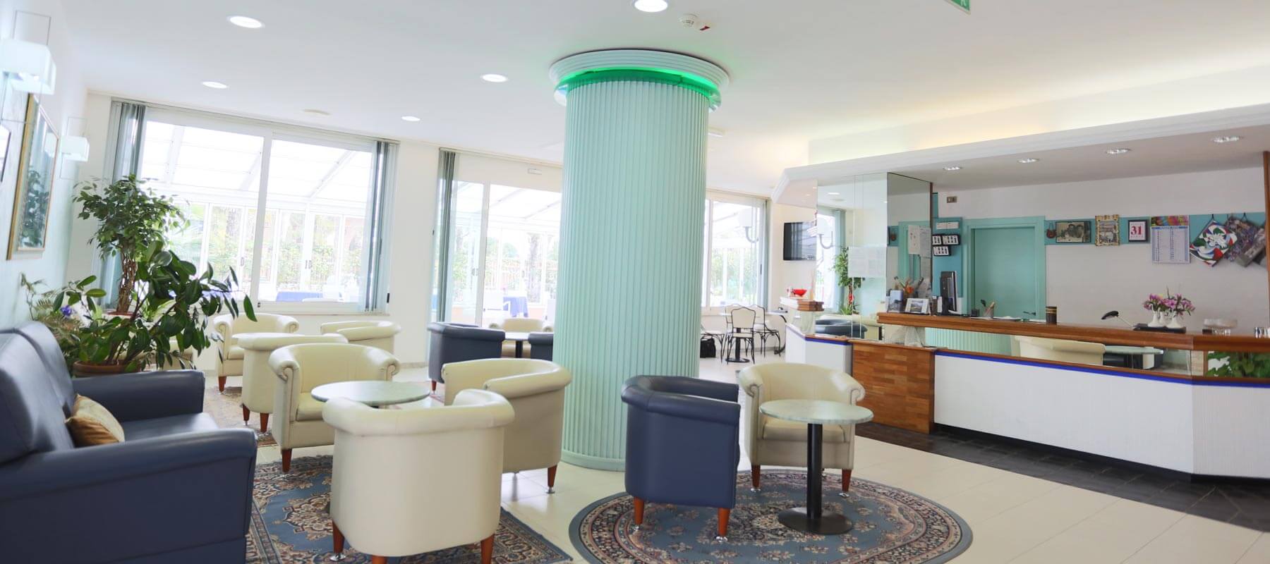 L’Hotel è situato in posizione tranquilla, a pochi passi dal mare, dal centralissimo e famoso viale Ceccarini e dalle Terme di Riccione.